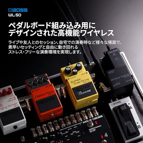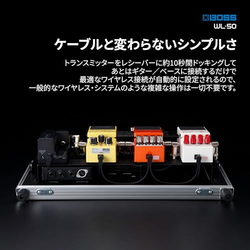 BOSS独自のワイヤレス・テクノロジーにより、音の遅れや音質劣化の心配なく、超高品質で安定した信号伝送を実現します。また筐体は非常にコンパクトで、面倒な接続設定も一切不要、ケーブルと同じ感覚で誰でも簡単にワイヤレス・システムを導入できます。