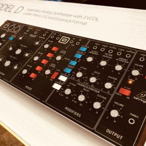 Model D はシンセサイザーの基本、アーキタイプともいえる。(一番左にあるモジュレーションエリアはともかく)音色作りの流れに沿ってパラメータが配置されているので直観的に操作もできるのだが、単に大きいノブにこだわっていじってみても面白い。オシレーターのピッチを弄れば図太い音もコードも思いのままだ。