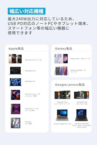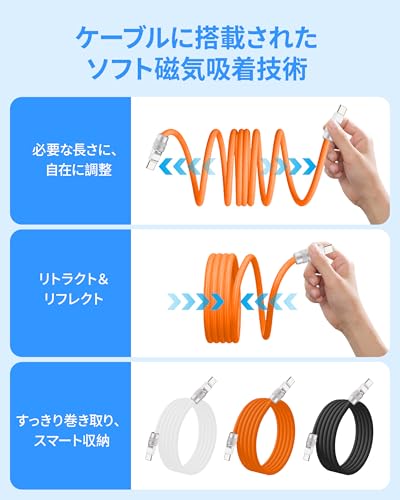 iPhone 13 Pro からの移行ということは、Lightning から USB-C 環境への移行を意味する。なので、USB-C 系のケーブルをまとめて購入。ケーブルは安物を買うとすぐ断線したり充電できなくなったりするので、240W PD対応の Anker PowerLine III Flow USB-C & USB-C ケーブルをチョイス。あと、車での充電でワイヤレス充電ポートが取り合いになるのでマグネットでくるっと丸まるヤツも買っておく。